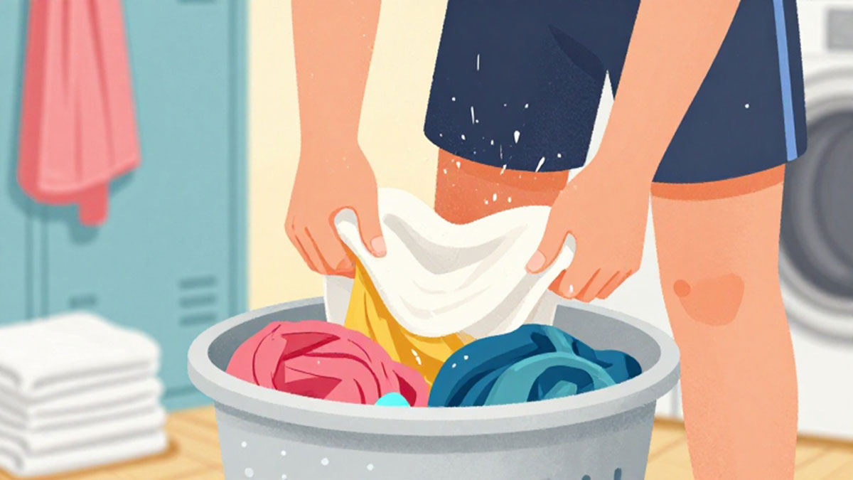 Langkah pertama adalah mencuci handuk dan pakaian olahraga secara rutin menggunakan deterjen yang efektif membunuh bakteri dan jamur. Disarankan untuk mencuci dengan air panas jika bahan pakaian memungkinkan, karena panas dapat membunuh mikroorganisme penyebab infeksi. Handuk sebaiknya dijemur di tempat yang terkena sinar matahari langsung, karena sinar UV memiliki efek antibakteri alami. Selain itu, pakaian olahraga yang basah harus segera diganti dan tidak dibiarkan lembap dalam tas olahraga.
